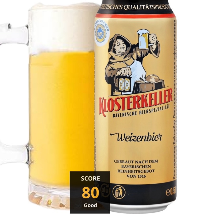 Hương thơm của Klosterkeller Weizenbier nổi bật với lúa mì, chuối chín, cam quýt, đinh hương, và chút bánh mì men. Khi thưởng thức, bia mang đến vị ngọt lúa mì, hương chuối, cam, chanh, đắng nhẹ (IBU ~10-15), với hậu vị sảng khoái, hơi cay nhẹ. Bia sử dụng nước, mạch nha lúa mì (50-70%), mạch nha lúa mạch, hoa bia, và men bia,.