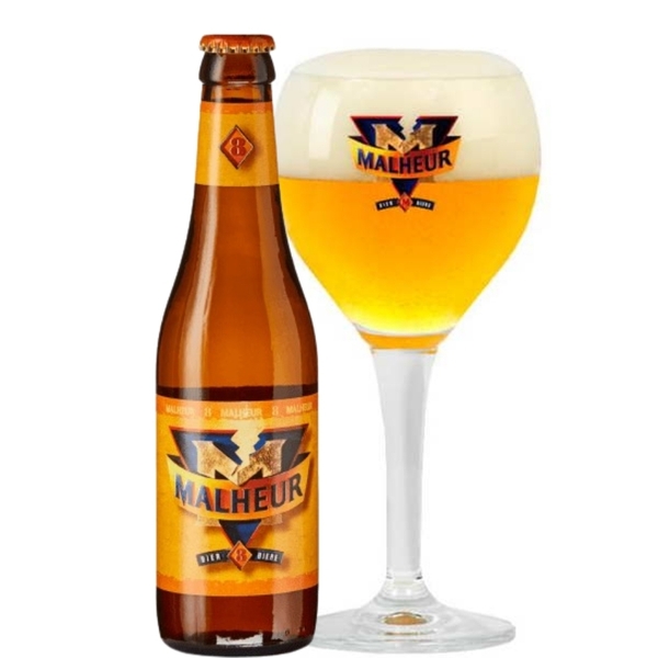 Bia Bỉ Malheur 8 - Chai 330ml là dòng bia Belgian Strong Pale Ale từ Brouwerij De Landtsheer NV (Malheur), được sản xuất tại Buggenhout, Bỉ, với truyền thống nấu bia từ năm 1997. Bia có nồng độ cồn 8% ABV, mang đến hương vị mạnh mẽ, tươi mát, với điểm nhấn từ hoa bia. Bia có màu vàng đục (hazy golden), với lớp bọt trắng mịn, dai dẳng, tạo vẻ ngoài hấp dẫn. Được ủ theo phương pháp lên men nóng (obergärig) và tái lên men trong chai (bottle-conditioned), Malheur 8 chín trong hầm bia 2 tháng, tuân thủ truyền thống Bỉ, tạo ra cấu trúc phức tạp nhưng dễ uống.