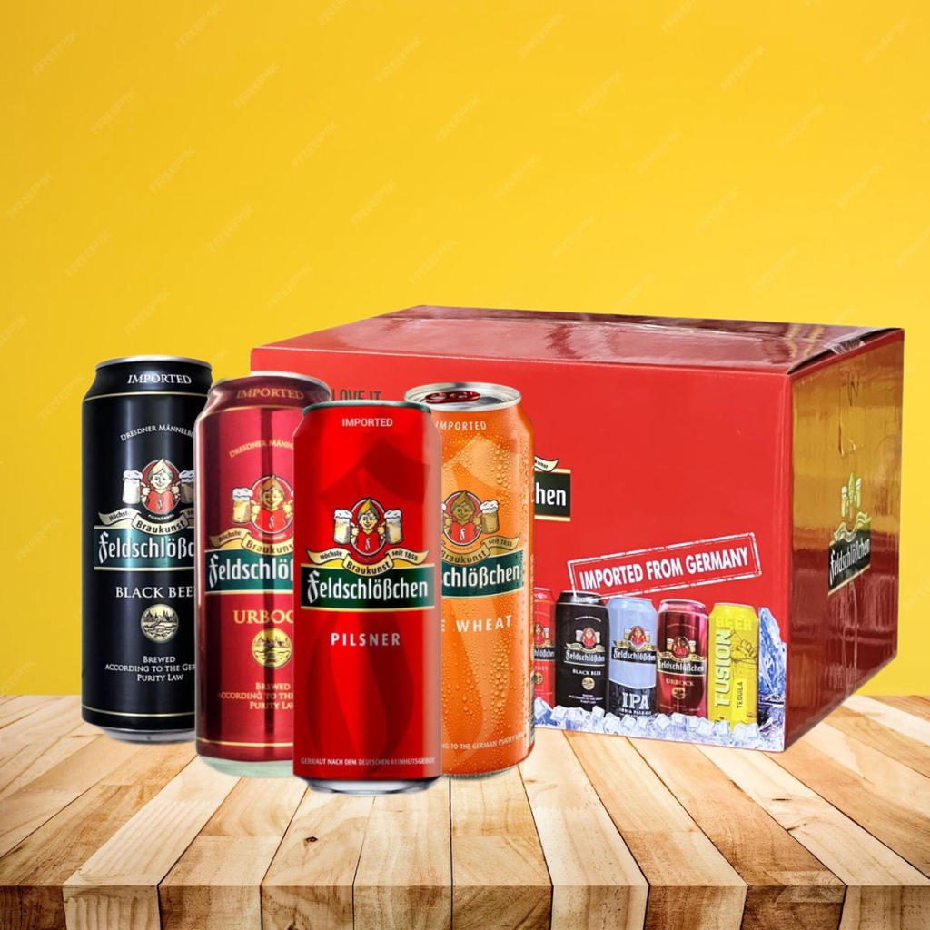 Hộp quà Bia Đức FeldschloBchen Mix 4 loại - Lon 500ml - Hộp 12